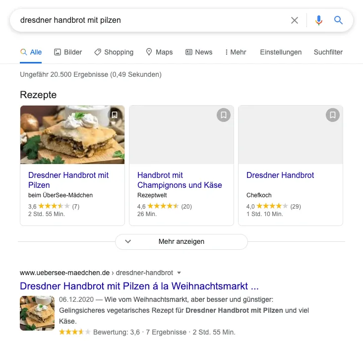Hier ist ein Beispiel wie man die Rezepte in Google findet: